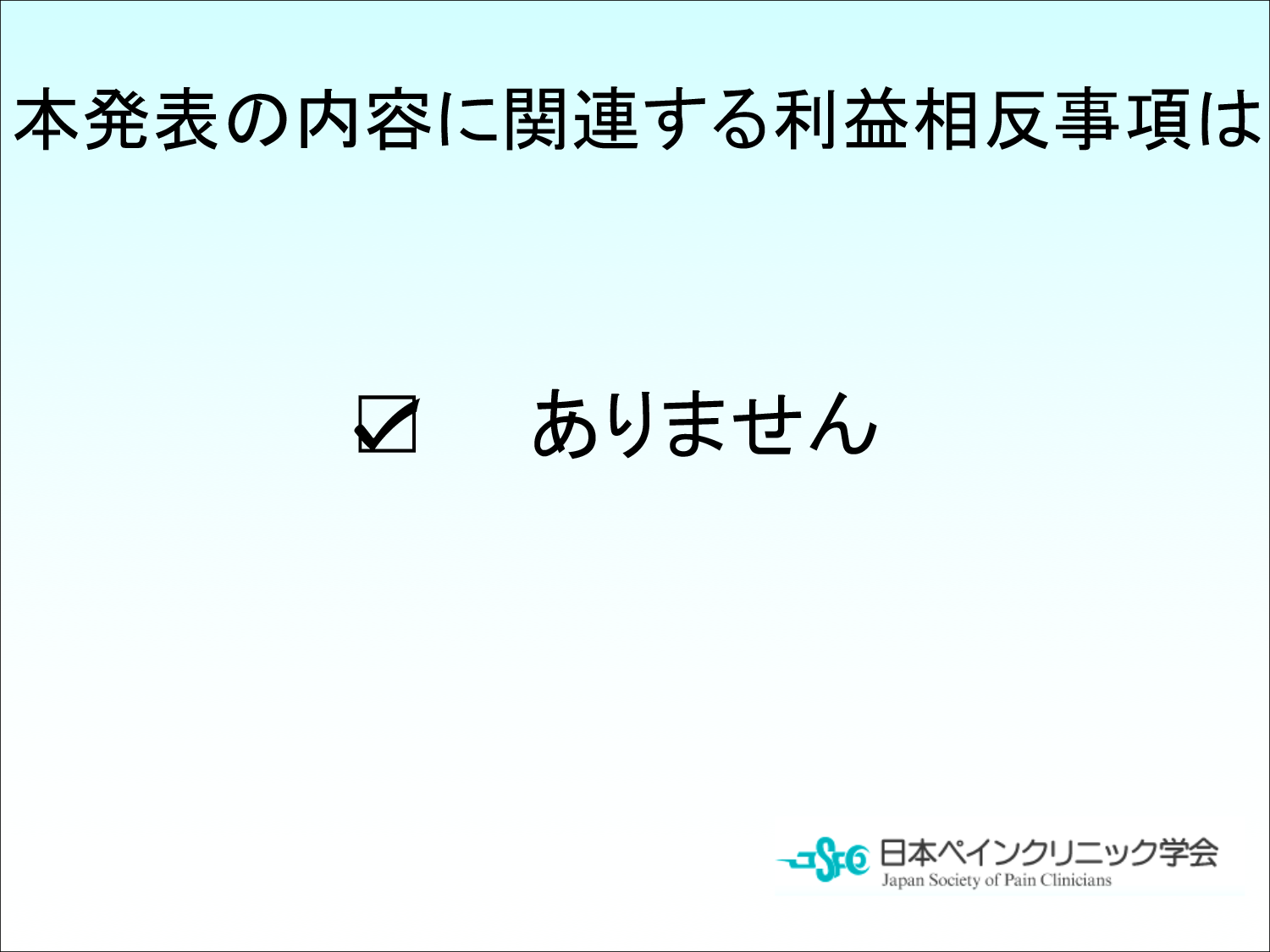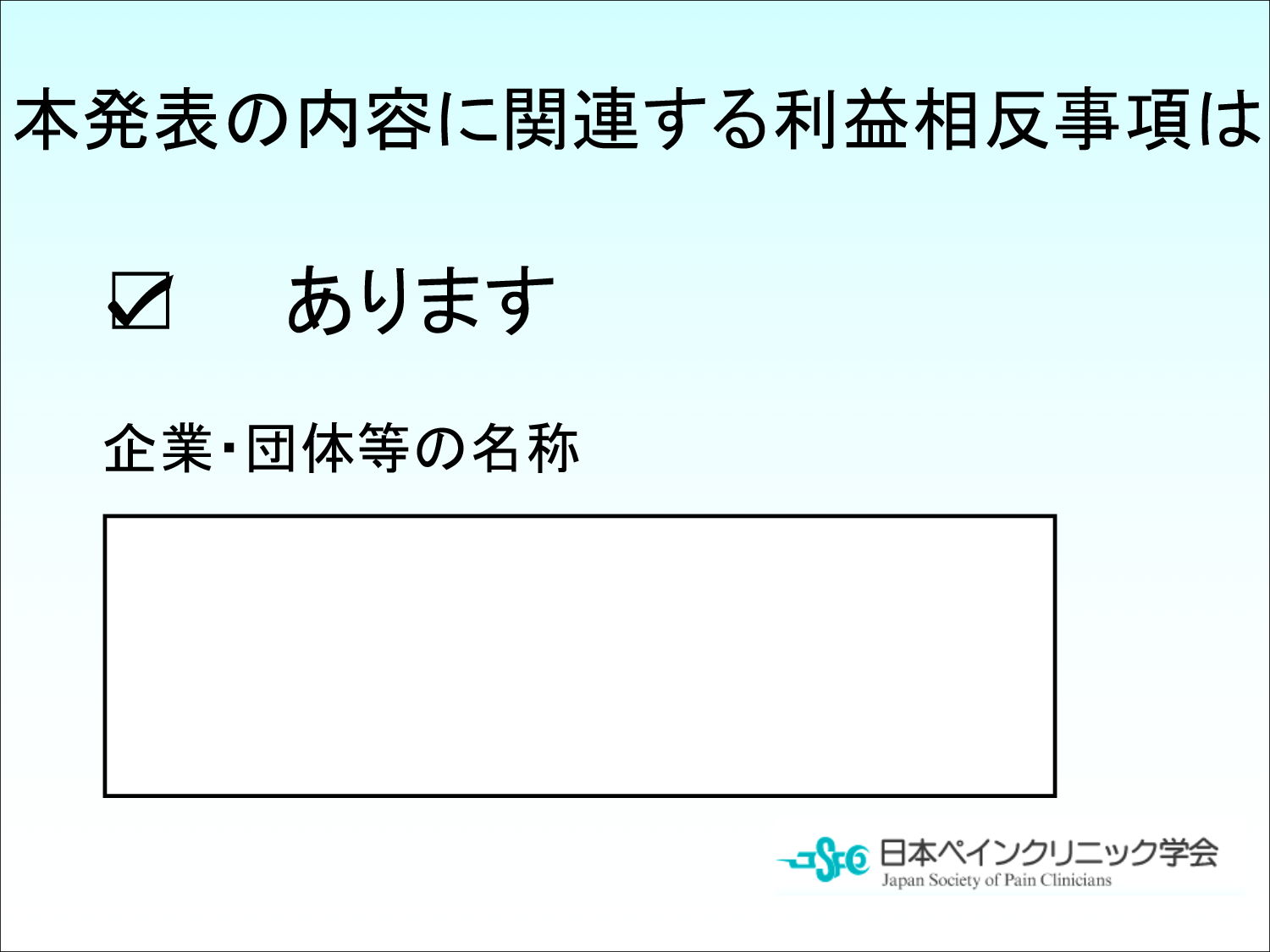 2010年7月2日に制定されました「一般社団法人日本ペインクリニック学会の利益相反に関する規定」に従い、学術集会での発表内容に利益相反がある場合に自己申告書を提出することが、また、学術集会での演題発表の際に、利益相反を開示することが必要になりました。